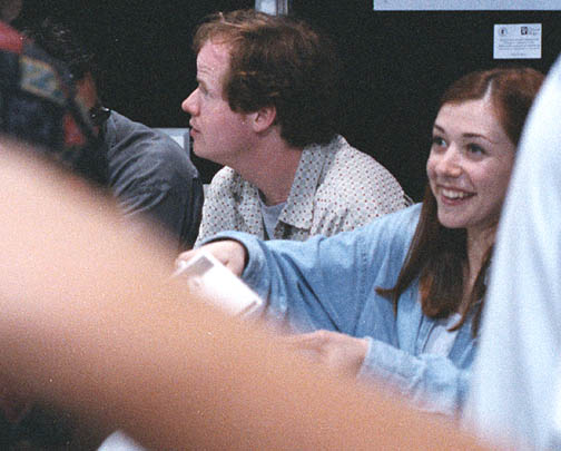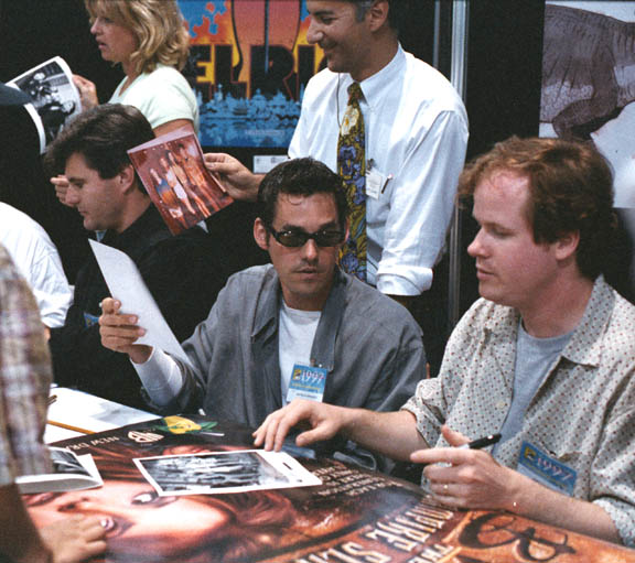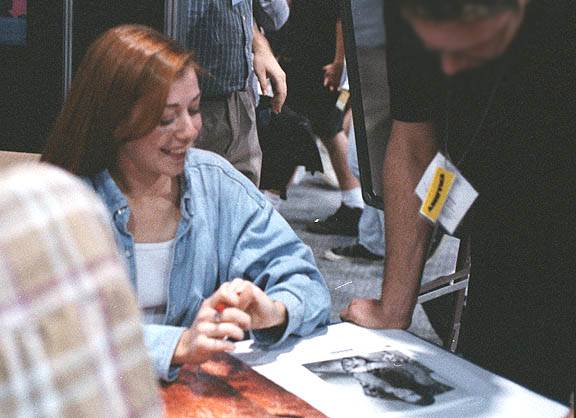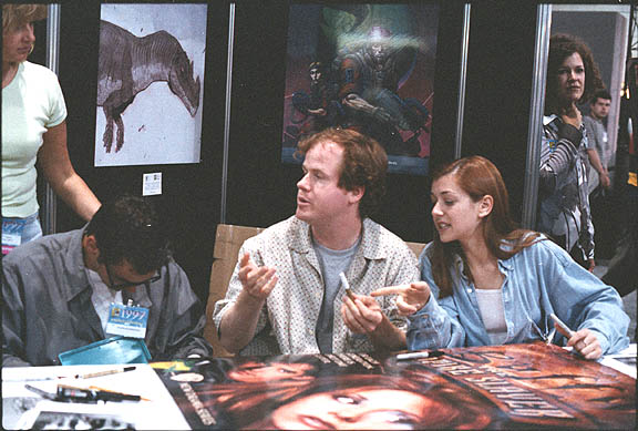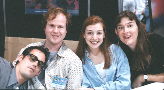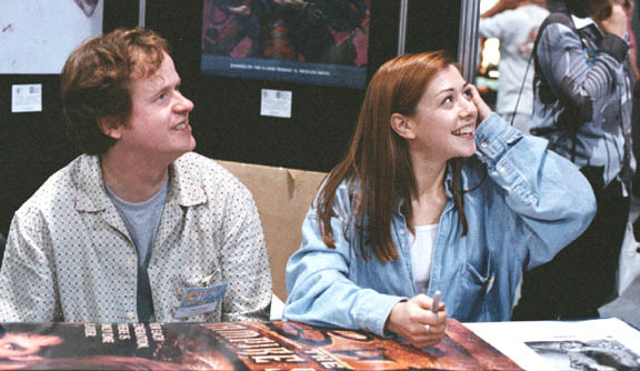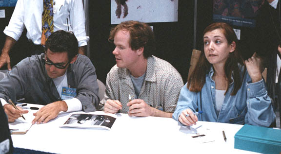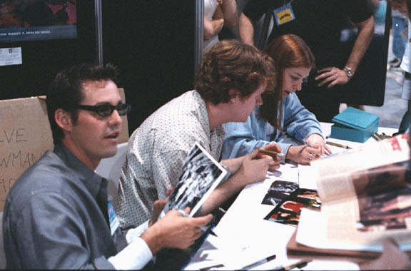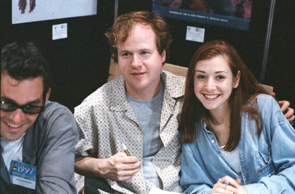 Joss Whedon, Nicholas Brendon, and Alyson Hannigan both onstage and signing autographs at ComicCon '97 in San Diego, California, July, 1997: